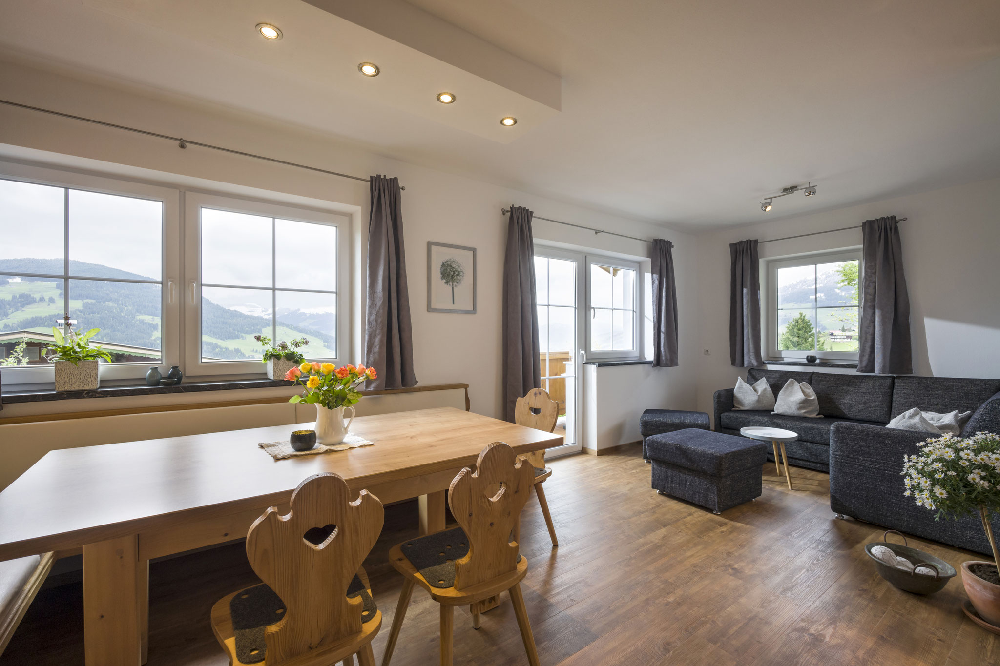 Inmitten der Kitzbüheler Alpen vermieten wir das ganze Jahr über eine liebevoll gestaltete Ferienwohnungen (69qm). Das Appartementhaus liegt ruhig und sonnig auf ca. 900m Seehöhe und bietet einen tollen Ausblick. Die Piste ist zu Fuß in einer Minute zu erreichen.