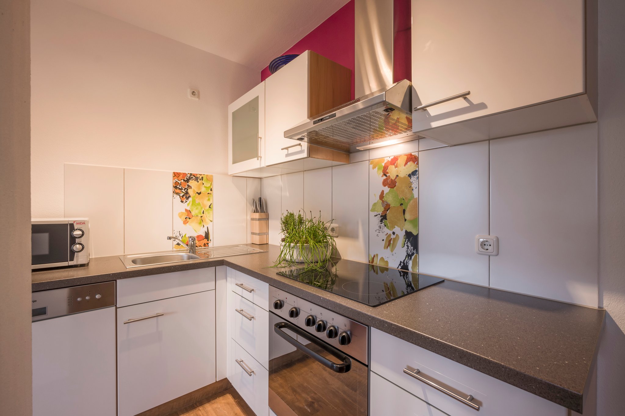Küchenblock mit Kühlschrank, Gefrierfach, Spülmaschine, Herd, Backrohr, Kaffeemaschine, Wasserkocher, Mikrowelle , sämtliches Geschirr, Besteck, Gläser, Geschirrtücher, TV/SAT, auf Wunsch Kinderhochstuhl