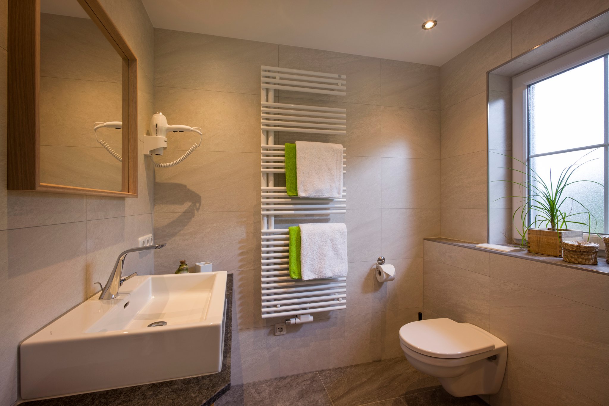 Föhn, Duschtücher, Handtücher, Badevorleger, Zahnputzbecher